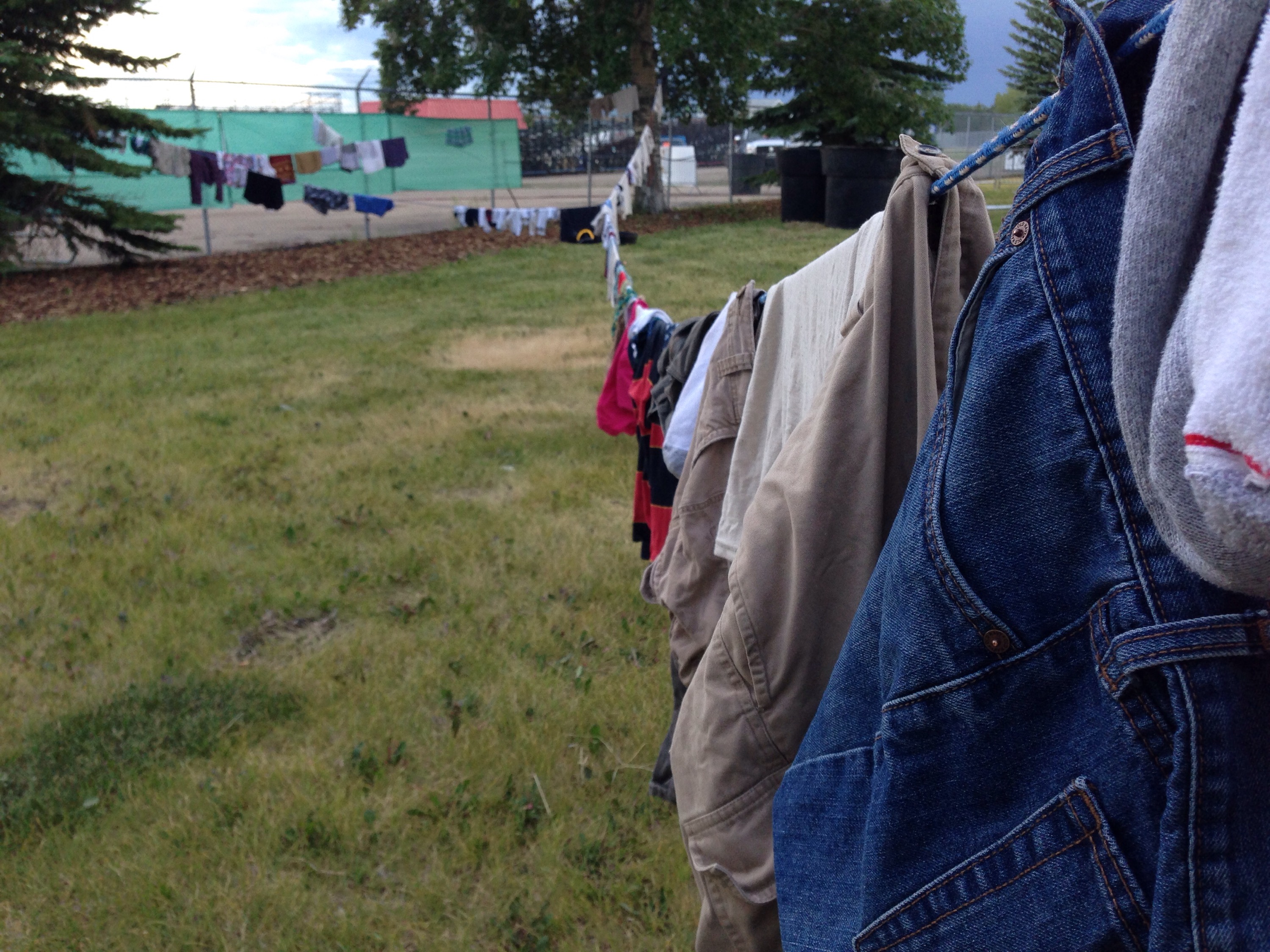 While at first it’s an endearing concept, It is quickly spoiled by the knowledge that “I just put a load into Kelly”. We didn’t have much time to stick around the laundry place, which meant that “Jewel”, my promiscuously named drier, didn’t have time to get hot enough to finish the job…[There it is again..]. This meant only one option upon arrival back at the fair… Drying our clothes gypsy style.