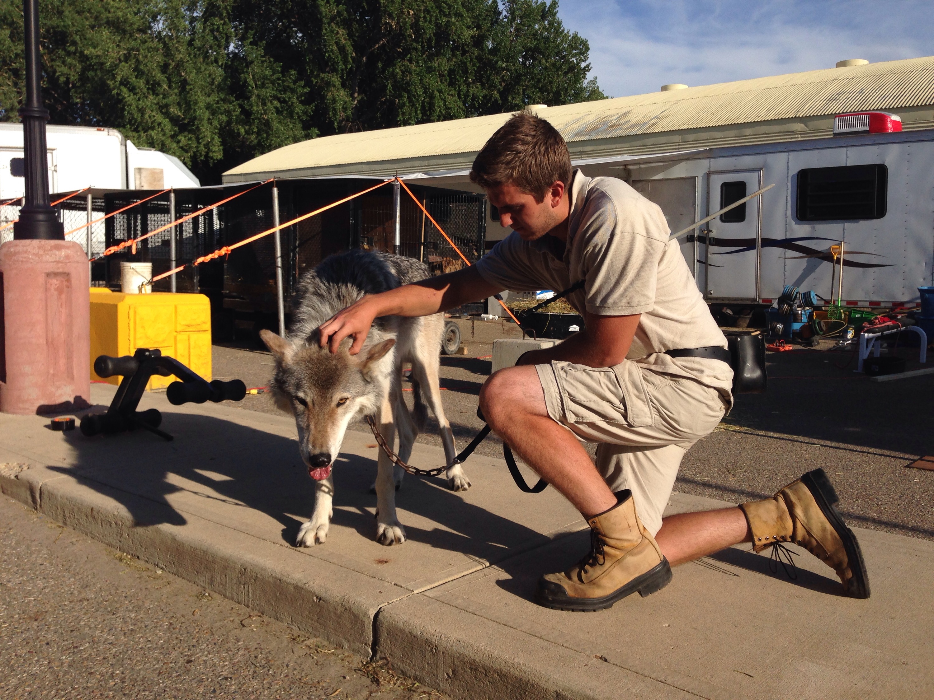 This is hardly our first fair location where we’ve been competing for attention with other shows/attractions, but today we had to duke it out against a local dog show… I made sure to open our show with the wolves, and remark on their stature, because let’s be honest, size matters.