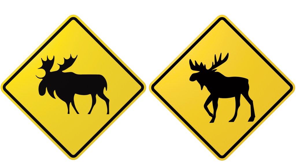 Did you know they have very recently updated the Moose warning signs in Canada? I have attached a photo below comparing the two. I enjoy this for a number of reasons: