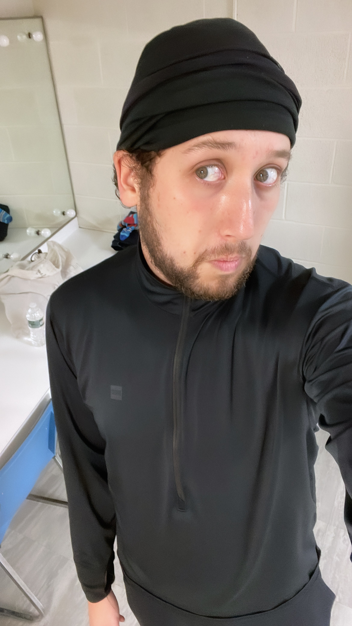 One of the silver linings of performing a show in nearly pitch black is that as long as puppets are where they need to be- performing in different theatres really isn’t too difficult! I am still getting used to the full black ensemble and pulling my ninja hood down…
