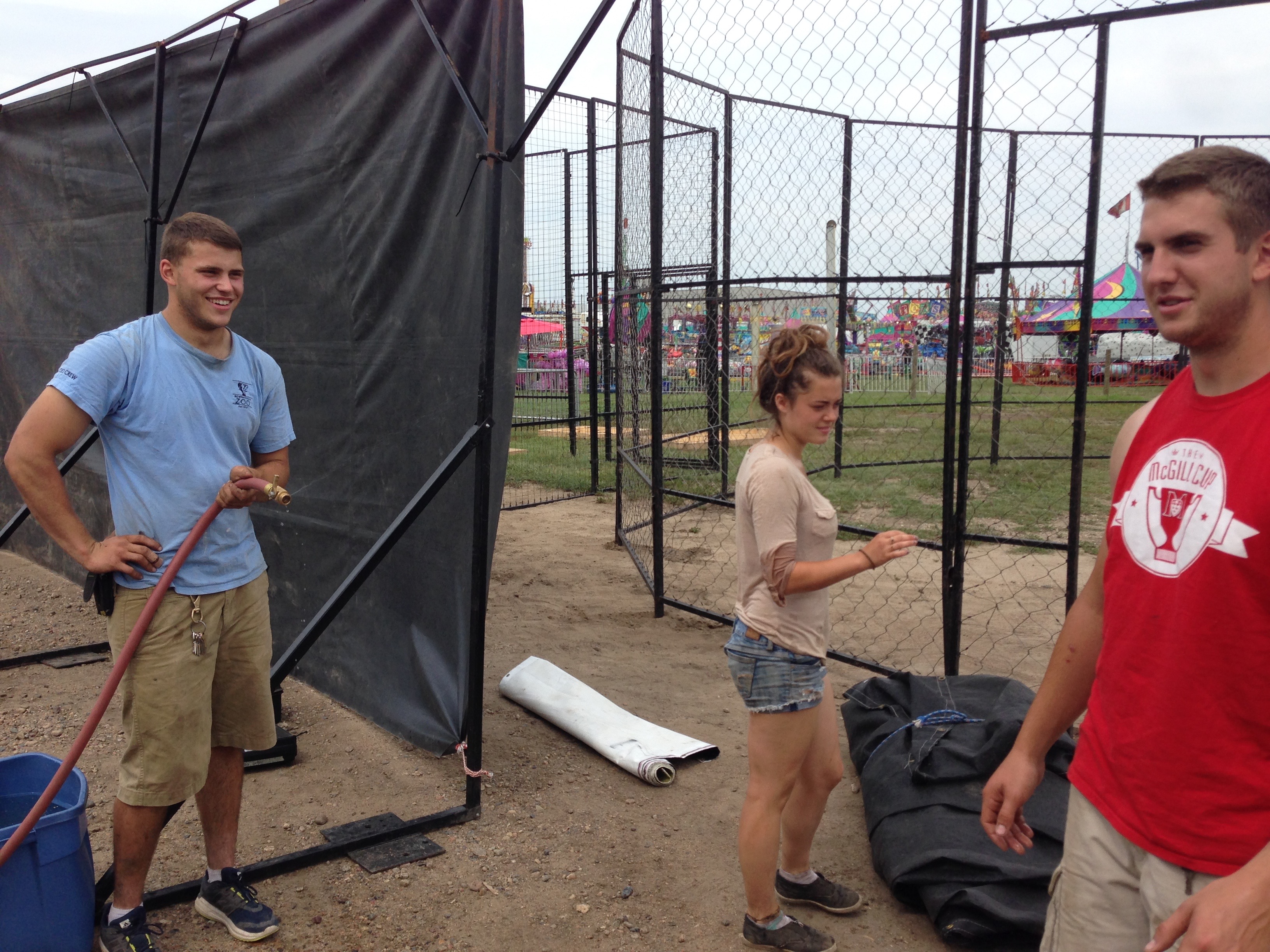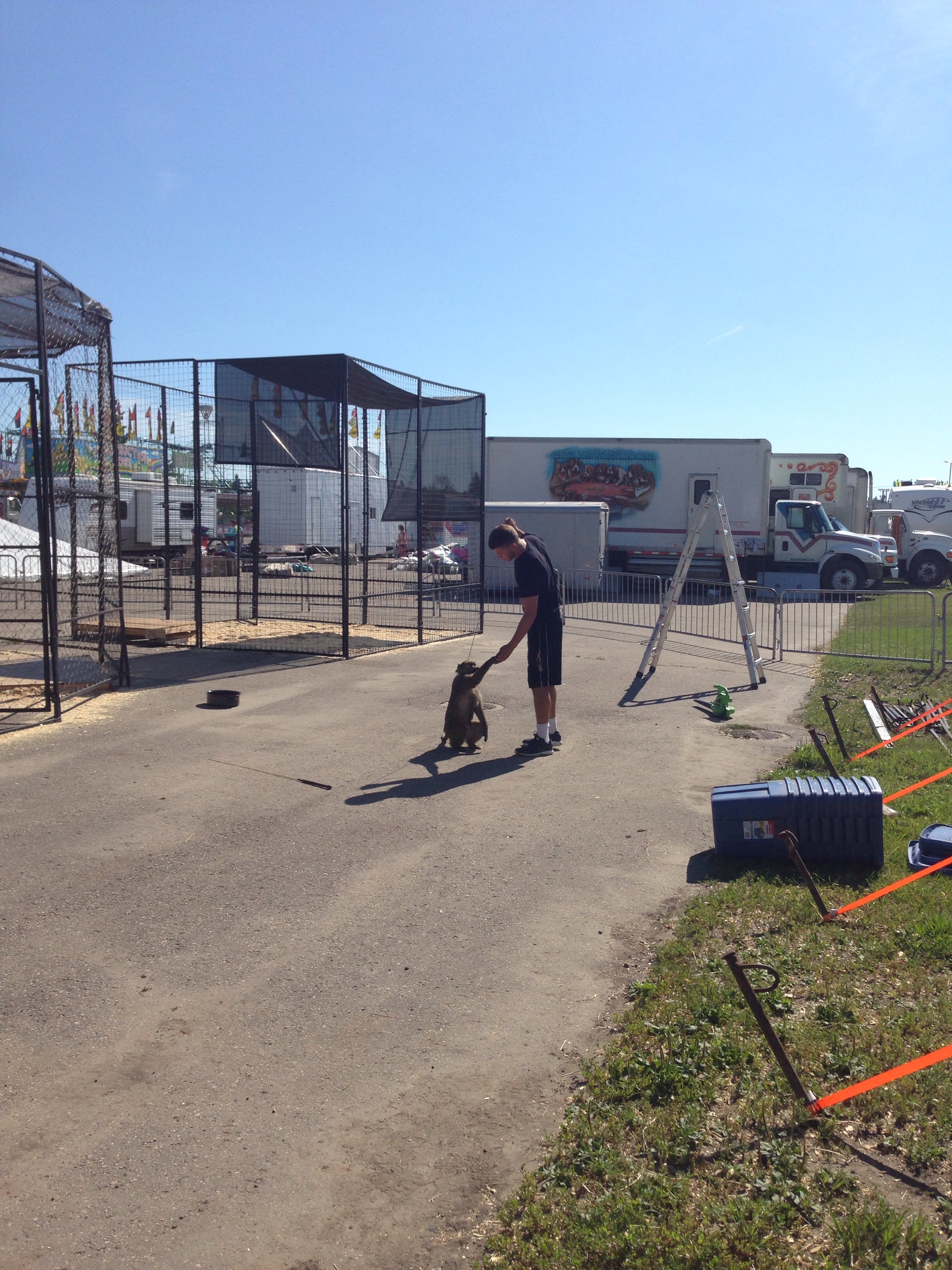 Midway on the left, us on the right. Slowly the lines between zoo crew and carnies are being blurred.
