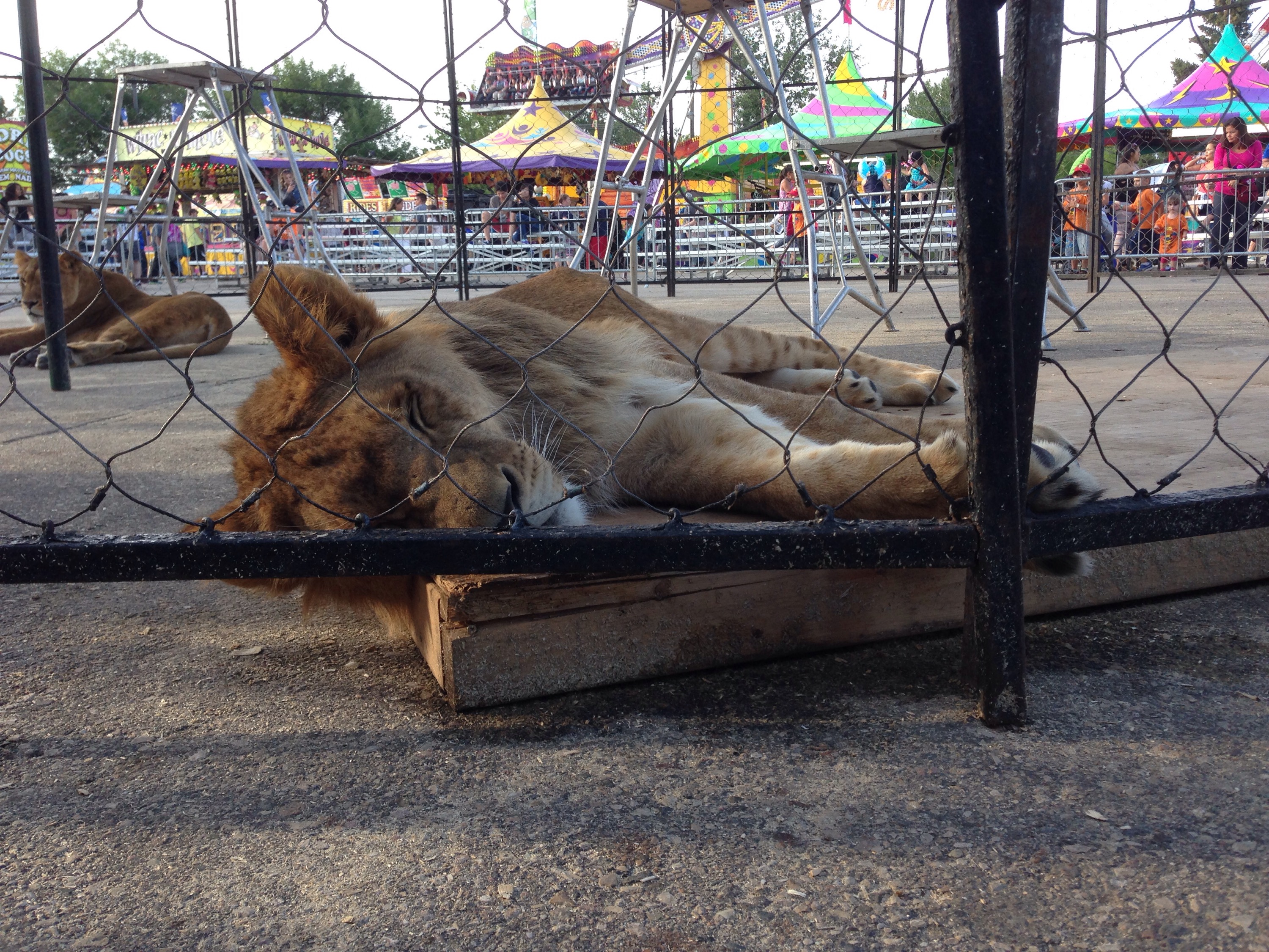 Due to how close we were to many of the midway attractions, including the classic “knock the blocks over with a green soft-ball”. Since a lot of people’s strategies involved throwing it as hard as physocally possible, there were a lot of rebounded balls rolling towards our animals (much to the delight of Aslan & Uno)…