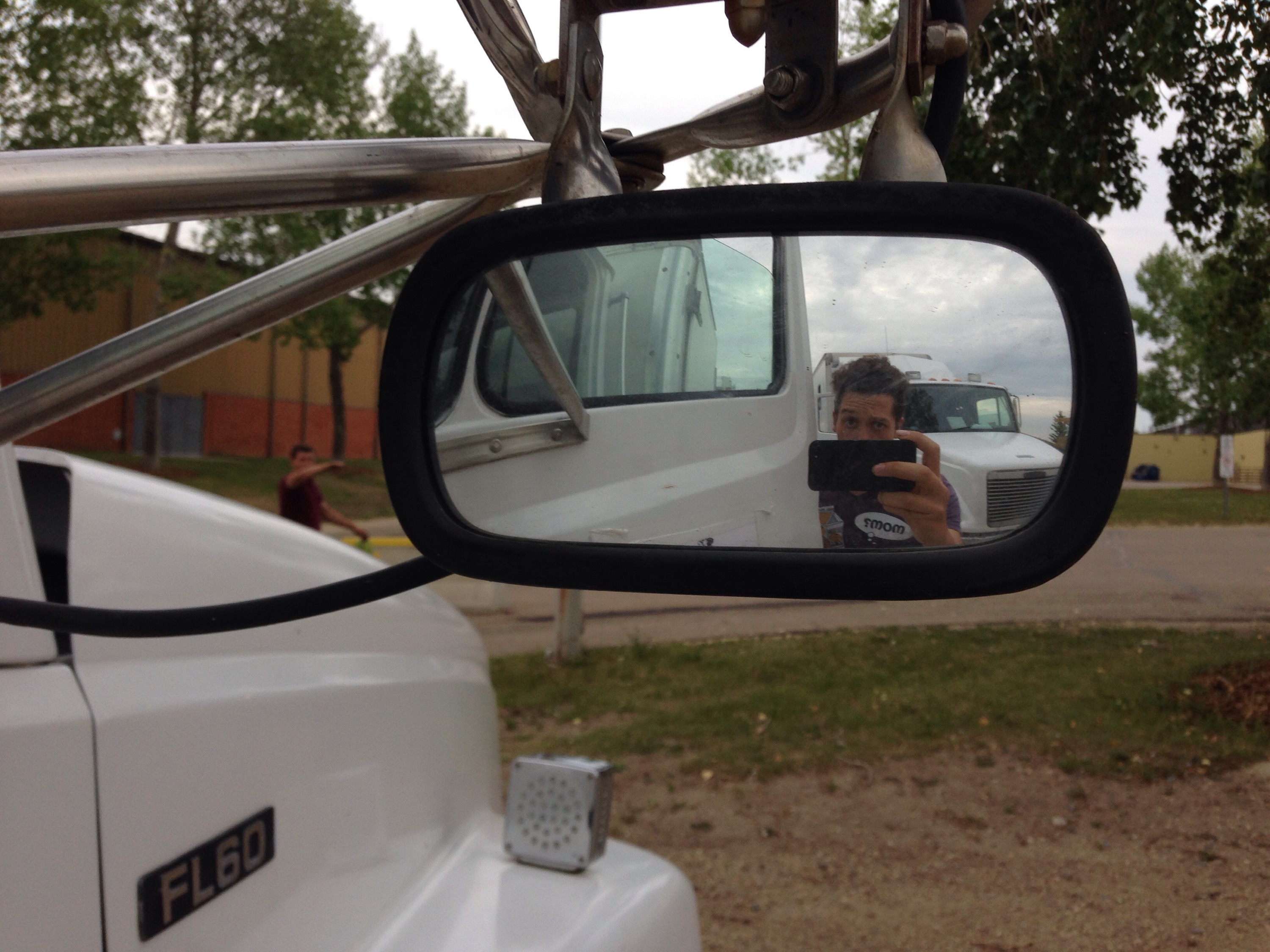 Passing time while stopped at inspection.After finally being cleared to go, we finally drove to Red Deer, and saw a beautiful spot waiting for us! It was GREEN! Not only are we surrounded by grass, but also trees all around us, pleasant for the animals and humans alike.