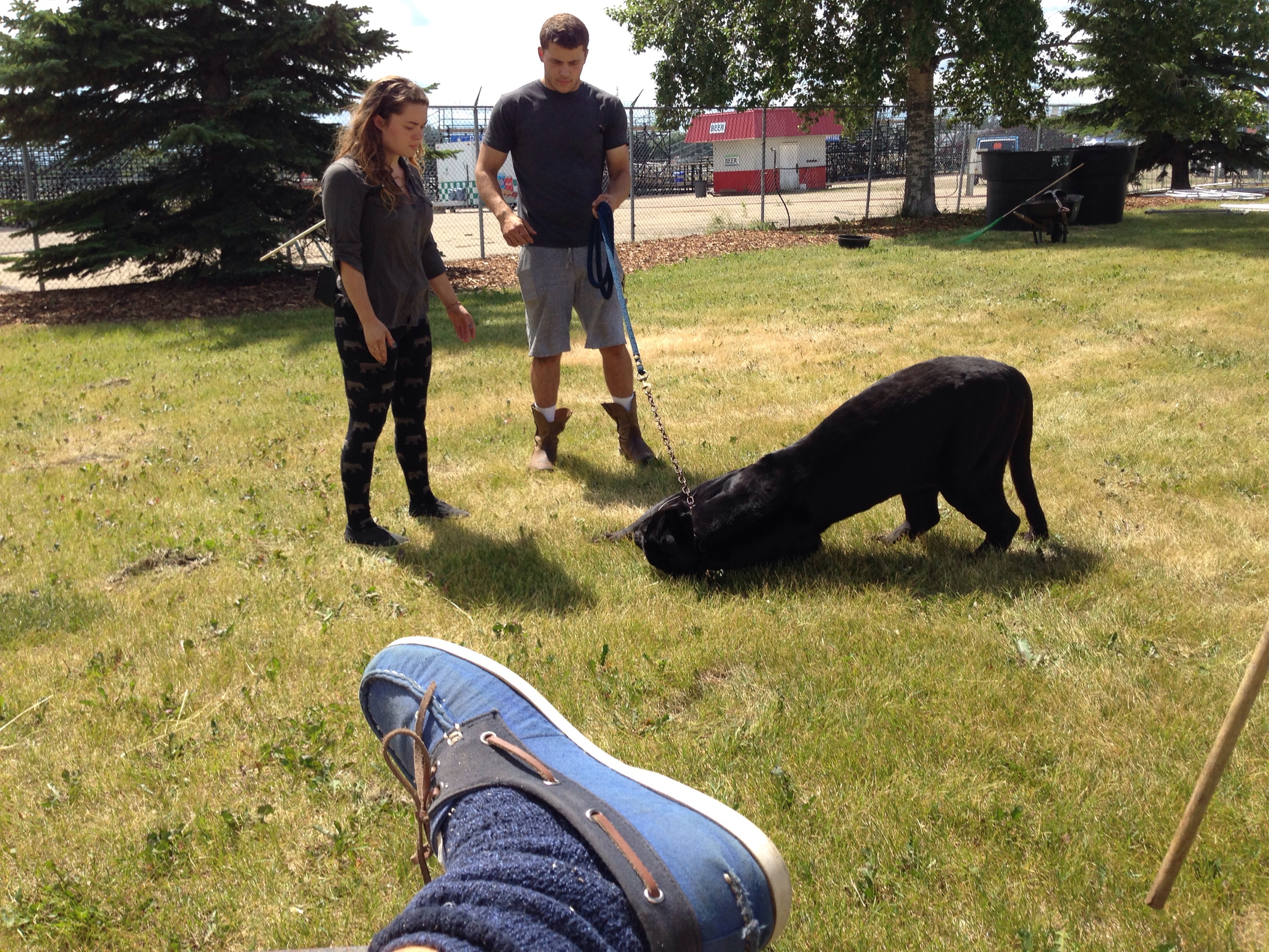 Baghera sizes up his new scene partner as they train. She’s got meat, so she must be alright. A photo of Baghera and Maddy on the set in B.C! [The photo obvioiusly not taken by me, as I am still in Red Deer].