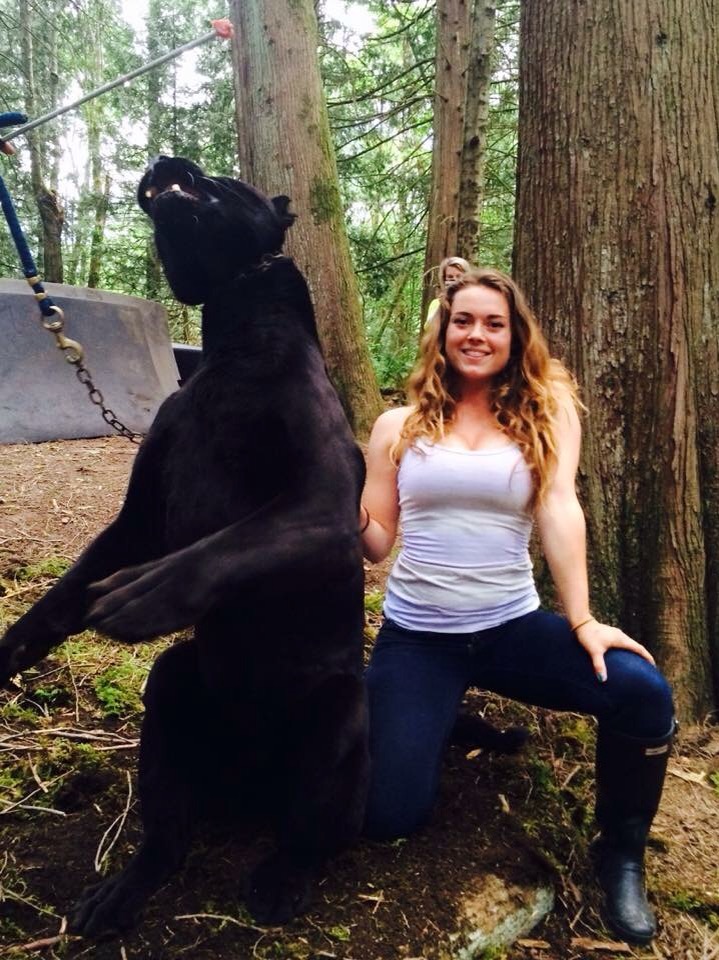 In his time at the zoo over the past decade or so, Baghera has been in hundreds of shows, often alongside Boots, the house-cat, whom he “competes with”. He’s also done a lot of movies and TV, namely Peter Benchley’s “Amazon”. Baggy just recently he headed out to B.C (with Maddy) to film something new… A cat is more famous than me. In the film project Maddy’s character will have to “attack” Baghera, which means he needs to get used to her being close first.